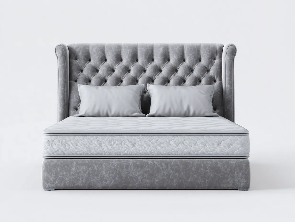 Dieses Doppelbett kombiniert elegantes Design mit komfortabler Funktionalität und eignet sich für stilvolle Schlafzimmer. Das hohe gepolsterte Kopfteil mit klassischer Knopfheftung verleiht dem Bett eine markante Optik und schafft eine gemütliche Atmosphäre. Die großzügige Liegefläche unterstützt erholsamen Schlaf und fügt sich harmonisch in moderne sowie klassische Raumkonzepte ein.