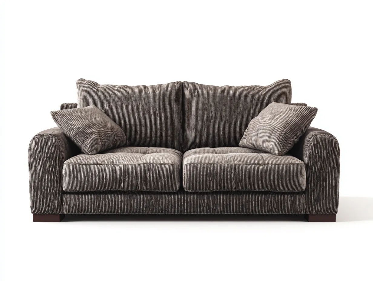 Das Sofa ist mit einem strukturierten Stoffbezug in Braun gefertigt und wird durch eine stabile Holzkonstruktion getragen. Die Oberfläche zeigt eine dezente Rippenstruktur, die dem Möbelstück eine wohnliche Optik verleiht. Die Polsterung sorgt für gleichmäßigen Komfort und unterstützt eine angenehme Nutzung im Alltag.